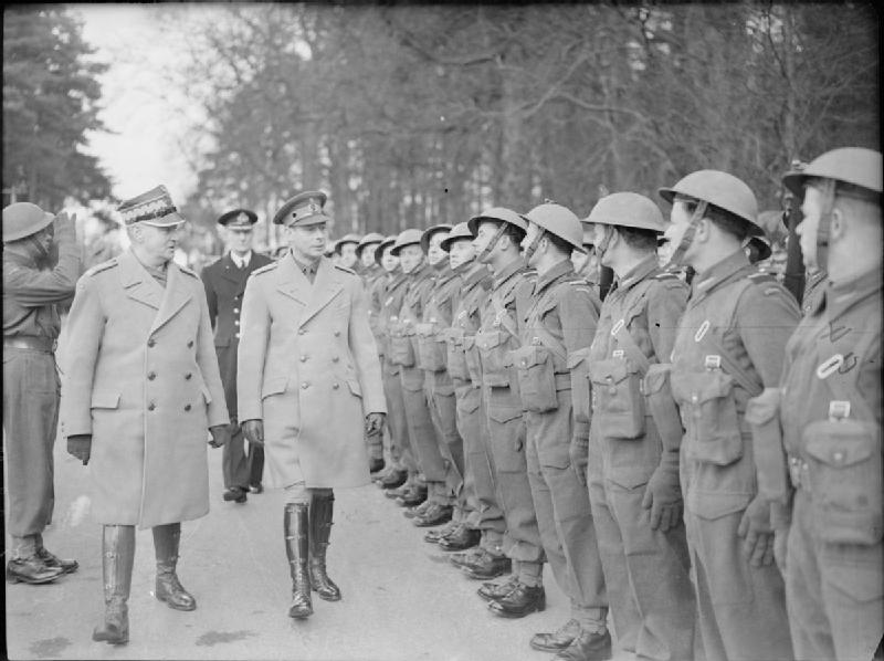 King George VI and General Władysław Sikorski, Prime Minister of the Polish government-in-exile, inspecting a guard of honour of the 1st Polish Corps at Glamis, Scotland, 8 March 1941