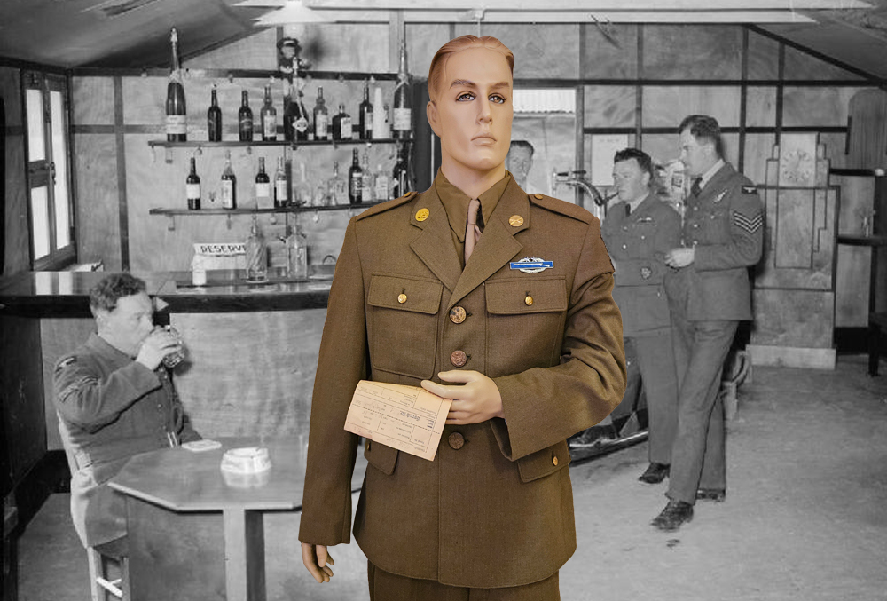 American 101st Airborne paratrooper in an A-class uniform in an English pub in 1944