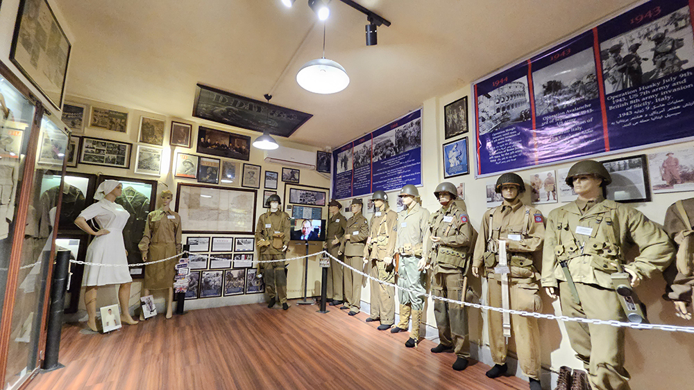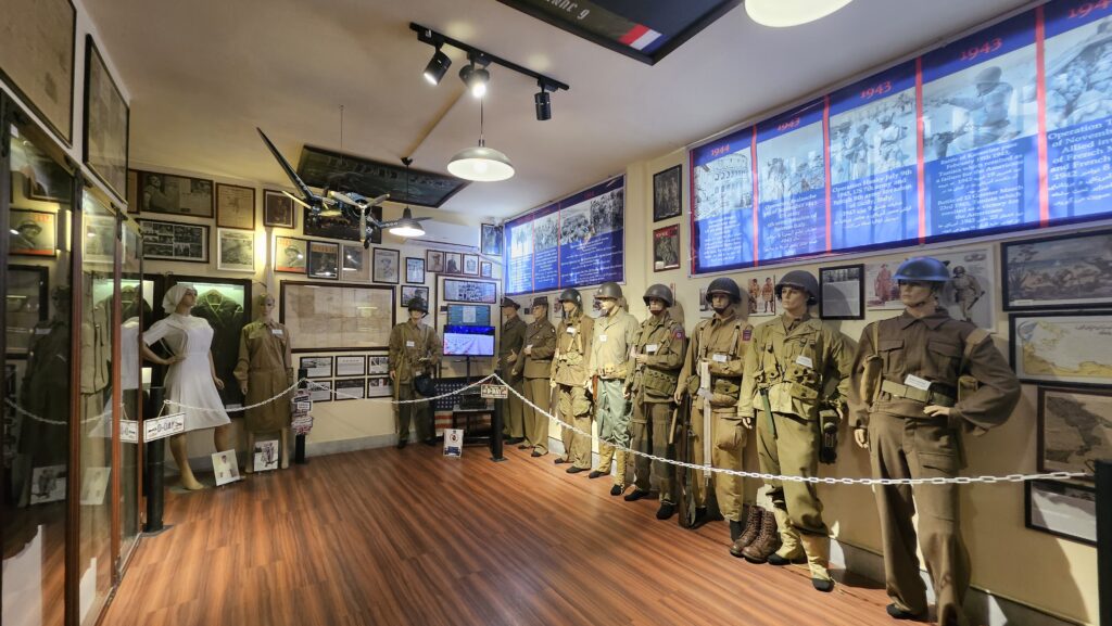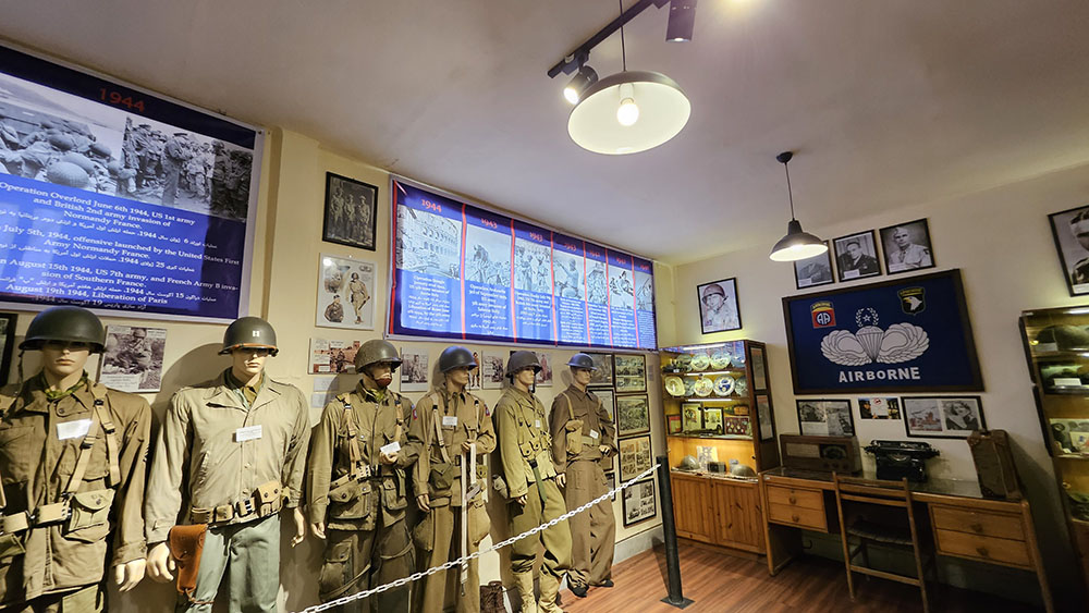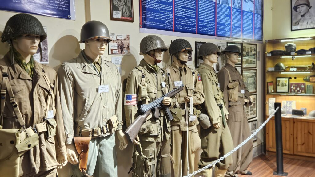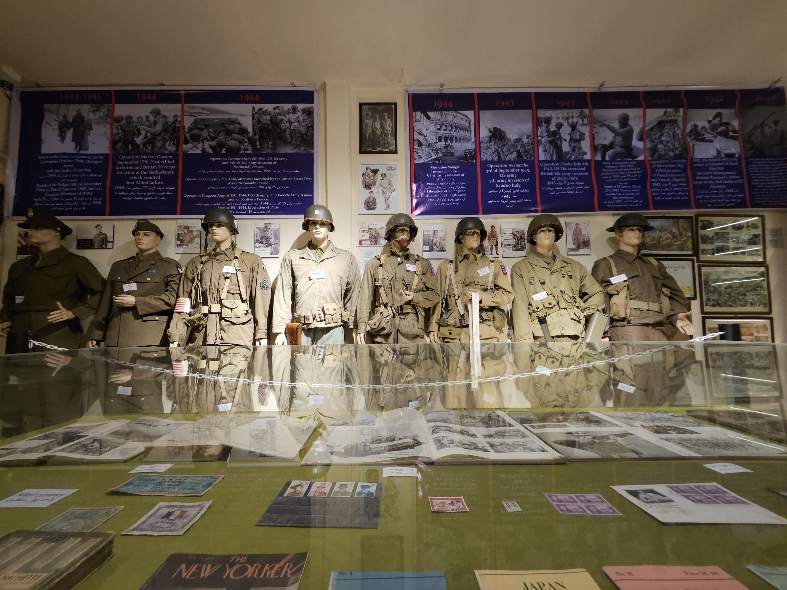 The Western Allied Room focuses on three main campaigns of WWII, The North African Campaigns, The Italian Campaigns, and The Western European Campaigns such as The Battle of Normandy. The room starts with a great display of the personal items used by the soldiers during wartime, the room then moves on to bring a simple illustration of the Mediterranean campaign WW2 from the 2nd Battle of El-Alamein and Operation Torch in Algeria and Morocco to the invasion of Sicily and operation Husky in July 1943 and Operation Avalanche in September 1943 the invasion of mainland Italy are all put on display. The Western Front is also put into display with a lot of details, Operation Overlord The Allied invasion of Normandy, France is put into display with an original map, uniforms, and a Television that shows footage of the battle of Normandy, Operation Market Garden, The Battle of the Bulge, and the Invasion of Germany is also put on display with uniforms and news articles.